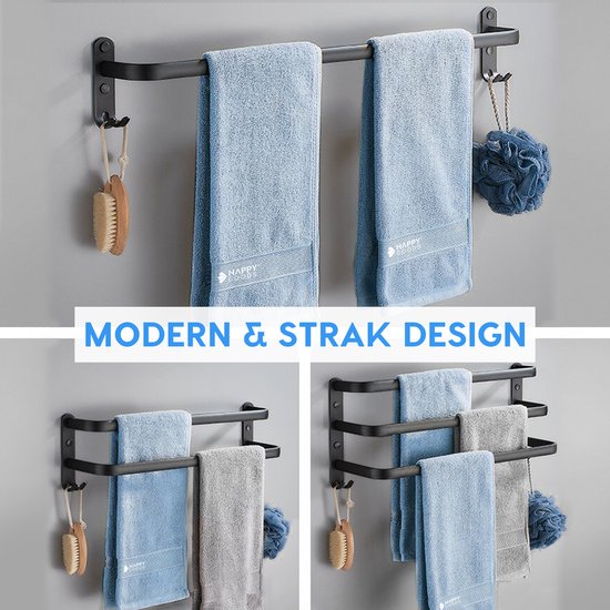Happy Goods - Handtuchhalter - 3-armig - Badezimmer - Handtuchhalter - Schwarz - Duschregal - Handtuchhalter - Handtuchhalter Badezimmer