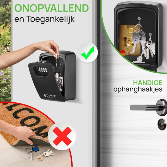 Der XXL-Schlüsselsafe von Happy Goods ist so konzipiert, dass er allen Witterungsbedingungen standhält und somit für den Innen- und Außenbereich geeignet ist. Er ist sogar wasserdicht und rostfrei! Dieses Zahlenschloss ist ideal für den Einsatz im Ferienhaus, im Büro, im Schuppen, im Fahrradschuppen, für Mieträume usw. Durch seine handliche Größe ist der Tresor auch perfekt für den Einsatz in Ihrem eigenen Zuhause geeignet! Von nun an sind Ihre Schlüssel überall sicher aufbewahrt!