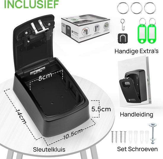 - Paketinhalt: 1x XXL-Schlüsselschrank mit Code für den Außenbereich, 1x Schraubensatz, 4x Haken, 4x Namensschilder, 4x Unterlegscheiben, Schutzschaum, 1x Anleitung