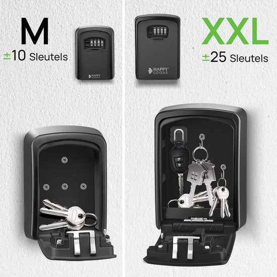 Aufgrund der großen Beliebtheit des Happy Goods Schlüsseltresors mit Platz für einen Schlüsselbund, haben wir eine neue Variante entwickelt, die perfekt für die ganze Familie ist: den Happy Goods XXL Schlüsseltresor, der bis zu 25 Schlüssel aufnehmen kann! So lassen sich auch die Schlüsselbunde mehrerer Personen sicher aufbewahren. Der XXL-Schlüsselsafe mit Code ist sehr praktisch für zu Hause, aber auch ideal für die Arbeit oder im Urlaub. So sind Sie immer gut geschützt! Dank seiner Größe kann eine Person den Tresor problemlos nutzen, um die Schlüssel für Ihr Zuhause, Ihren Arbeitsplatz und zum Beispiel Ihr Auto sicher und getrennt aufzubewahren.