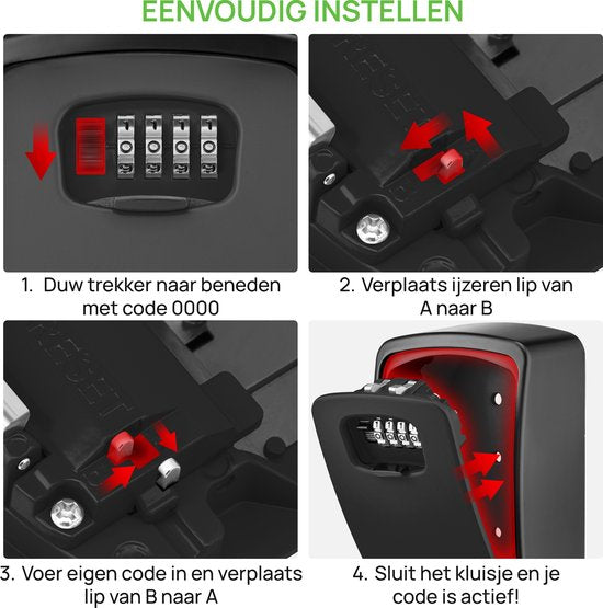 Der Schlüsselschrank für den Innen- und Außenbereich mit Zahlenschloss ist einfach zu installieren. Um es Ihnen noch leichter zu machen, liefern wir die notwendigen Schrauben und einen praktischen Schritt-für-Schritt-Plan mit! So ist er im Handumdrehen montiert und alle Schlüssel sind sicher aufbewahrt!