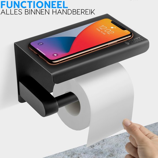 Wir alle kennen es: Wo lässt man sein Smartphone während des Toilettenbesuchs? Dieser trendige WC-Rollenhalter von Happy Goods ist nicht nur funktional als WC-Rollenhalter, sondern auch als Halter für dein Smartphone! Kein lästiges Suchen mehr.Wählen Sie einen geeigneten Platz für Ihr Telefon und stellen Sie es sicher auf den Toilettenpapierhalter mit Ablage. Geeignet für jedes Smartphone!
