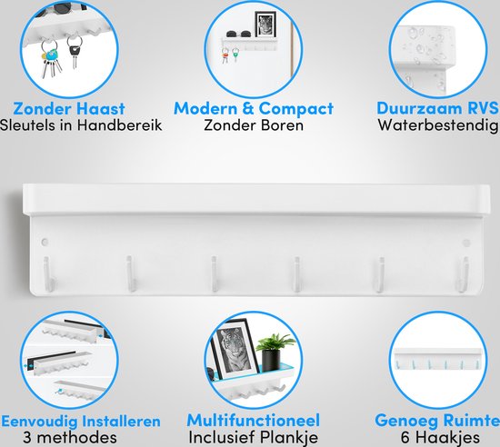Happy Goods® Schlüsselregal Weiß - Schlüsselschrank für den Innenbereich - Selbstklebend - Schlüsselhalter - Edelstahl - Schlüsselorganizer - Schlüsselbrett Modern - Schlüsselregal inklusive Schrauben - Schlüsselschränke