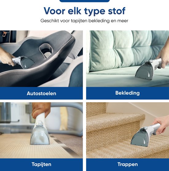 Ist Ihr Teppich, Vorleger oder Sofa schmutzig? Würden Sie ihn gerne reinigen? Dann probieren Sie den Heevey Fleckenreiniger aus! Dieser Teppichreiniger verfügt über eine Dampffunktion, eine Heizfunktion und eine starke Absaugung, um z.B. Kaffee-, Wein-, Blut- und Haustierflecken aus Ihren Polstern zu entfernen. Installieren Sie den Reiniger ganz einfach, indem Sie einen Aufsatz anbringen. Wählen Sie die gewünschte Reinigungsfunktion und entfernen Sie die Flecken mit der Saugfunktion! Reinigen Sie Ihre Polster gründlich!