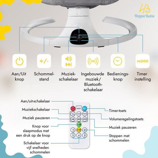 HeppieBabie Electric Rocker - Musik- und Schaukeloptionen - 5-Punkt-Gurt - Babyschaukel - Babyschaukel - Mit Ebook