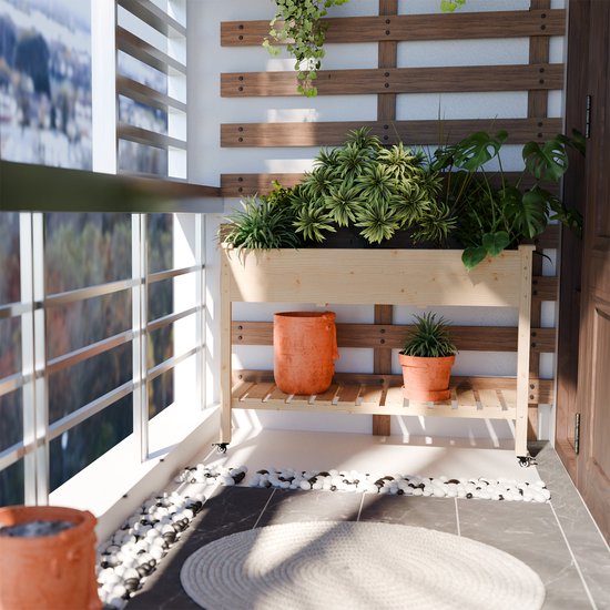 Entdecken Sie das Freya Hochbeet mit Rädern - der ideale Partner für Ihren Balkon und Garten! Dieses moderne Hochbeet aus Holz bietet die perfekte Lösung für den Anbau von Kräutern, Blumen und Gemüse auf begrenztem Raum. Mit dem stabilen Pflanzgefäß und dem praktischen Stauraum haben Sie alles in Reichweite. Das integrierte Vlies sorgt für eine optimale Wasserregulierung und schützt Ihre Pflanzen vor dem Austrocknen. Ob als Balkon- oder Pflanzgefäß, der Hochbeetkasten Freya verwandelt jeden Außenbereich in eine grüne Oase. Bestellen Sie noch heute Ihren Kräutergarten und genießen Sie frische Zutaten und Blumen in Ihrem eigenen Zuhause!