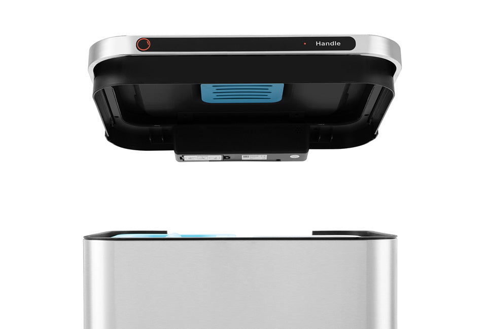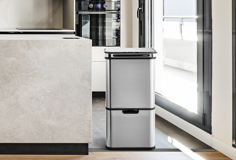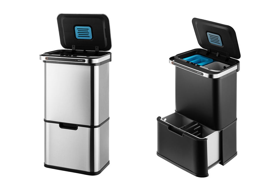 Geeignet zur Verwendung mit 60L Kordelzugbeuteln für das große Fach und 20/25L Müllbeutel für die kleineren Fächer. Eine stilvolle, hygienische Lösung für die Mülltrennung zu Hause.