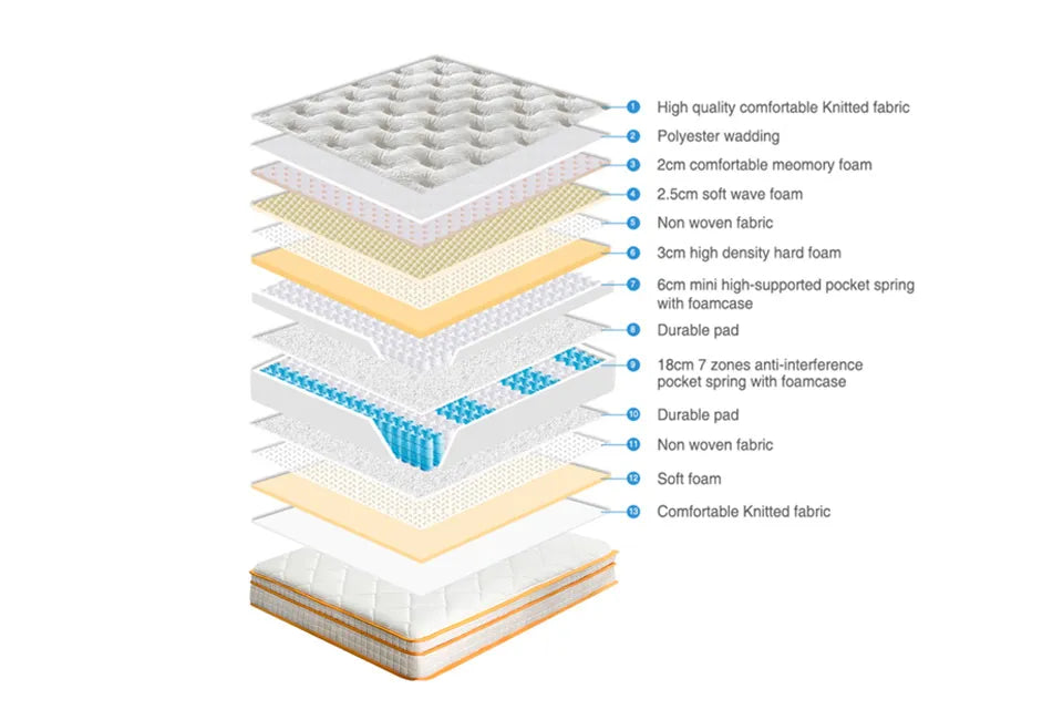 - Zwischenschicht: 6 cm Mini-Taschenfedern für zusätzliche Elastizität und Unterstützung .
