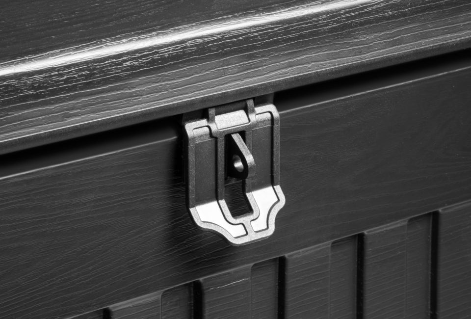 Dieser geräumige Aufbewahrungskoffer hat ein Volumen von sage und schreibe 270 Litern. Der Koffer bietet Platz für allerlei Spielzeug wie Fußbälle, Federballschläger mit Federn, Zelte, Brettspiele etc. Auch Gartenkissen, Gartenschläuche und Tierfutter können darin verstaut werden.