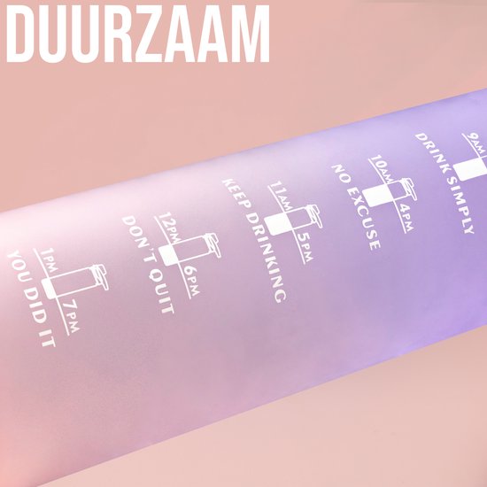 Fällt es Ihnen schwer, täglich genug Wasser zu trinken? Dann ist diese motivierende 1-Liter-Trinkflasche ideal für Sie! Mit dieser 1-Liter-Trinkflasche mit praktischem Trinkauslauf werden Sie nie wieder vergessen, ausreichend zu trinken. Die Flasche verfügt über eine Zeitanzeige an der Seite und inspirierende Texte, die Ihnen genau zeigen, wie viel Sie bereits getrunken haben und Sie sogar ermutigen. Die motivierende 1-Liter-Wasserflasche hat ein trendiges Design, ist leicht zu tragen und dank des praktischen Trinkauslaufs äußerst bequem zu benutzen.