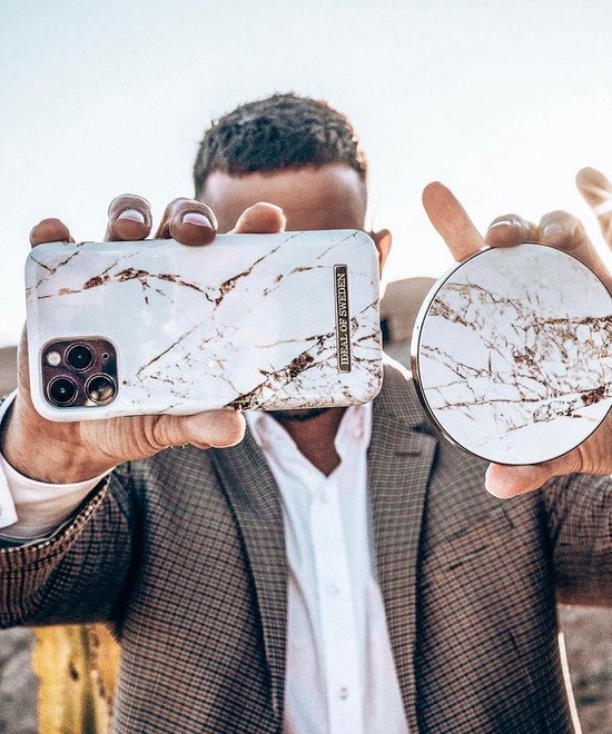 Deze carrara gold fashion back case van iDeal of Sweden is de perfecte combinatie van volledige bescherming en premium design voor je iPhone 11 Pro Max. Het hoesje is gemaakt van hard kunststof De randen van de back case steken iets uit waardoor behalve de voorkant, achterkant en zijkanten ook het scherm goed beschermd wordt. Het hoesje is op maat gemaakt waardoor deze perfect past op je iPhone 11 Pro Max.