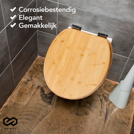 Infinity Goods Bambus Toilettensitz Terry - Toilettensitz mit Deckel - Soft Close - Edelstahlscharniere - Inklusive Befestigungsmaterial