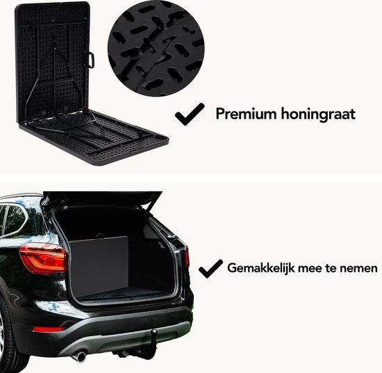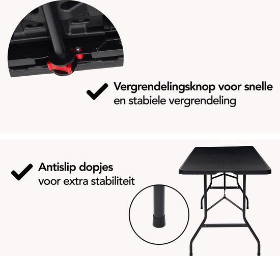 Infinity Goods Zusammenklappbarer Tisch - Klapptisch - 180 x 70 x 74 cm - Campingtisch - Gartentisch - Tragbar - Schwarz
