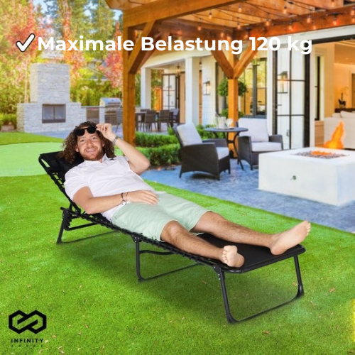 Möchten Sie die ultimative Entspannung und das schöne Wetter an jedem Ort genießen? Die Infinity-Liege wurde entwickelt, um Ihre Entspannung auf die nächste Stufe zu heben! Diese faltbare Liege ist ideal für Garten, Balkon, Camping, Pool oder Strand. Dank ihres geringen Gewichts von 6 kg können Sie diese Liege problemlos an alle Ihre Lieblingsorte mitnehmen.