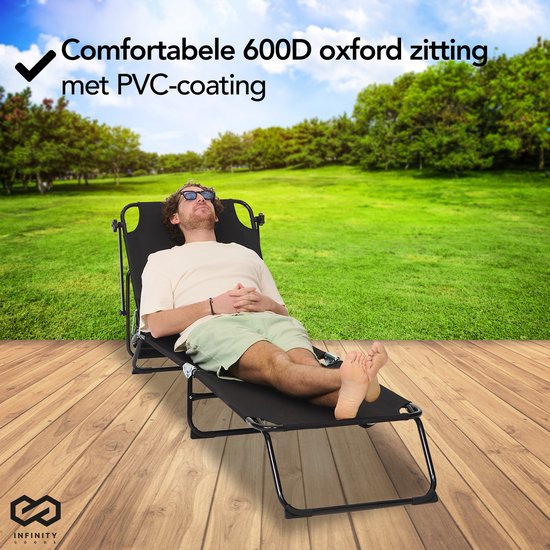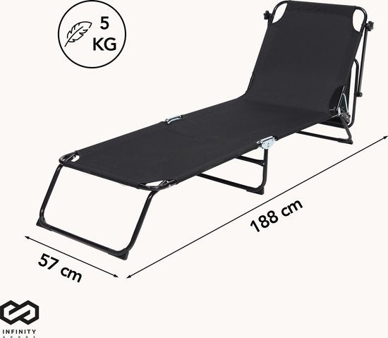 Die Infinity Goods Sonnenliege, die 5 kg wiegt, ist einfach zusammenzuklappen, was die Lagerung oder den Transport erleichtert. Genießen Sie einfach Komfort und Entspannung an jedem gewünschten Ort, ohne die Last von schweren und unpraktischen Möbelstücken.