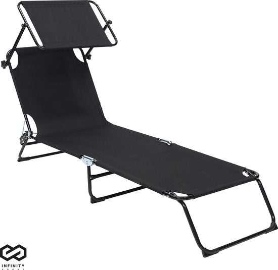 Infinity Goods Liege mit Sonnenschirm - klappbar - Sonnenbank - Liege - verstellbar - verstellbar - Garten - wetterfest - Schwarz