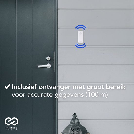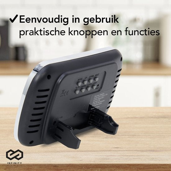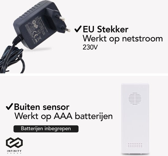Infinity Goods Wetterstation - Wettervorhersage - Hygrometer - Innen und Außen - Temperatur - Luftfeuchtigkeit - Kabelloser Außensensor - 100M Reichweite - Schwarz