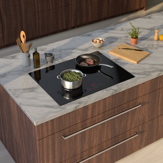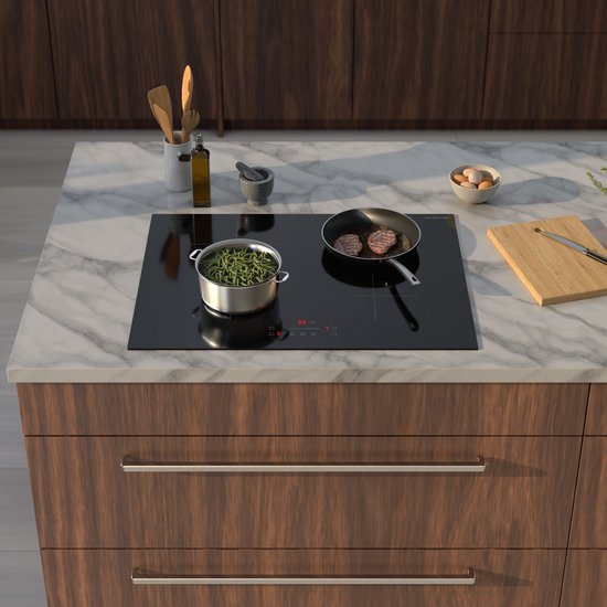 Das nahtlose Inventum Einbau-Induktionskochfeld IKI7028 verfügt über vier Kochzonen mit jeweils neun Einstellungen, einen Timer und eine Kochzeitschaltuhr. Dieses Gerät verfügt über ein fortschrittliches Energiemanagement, bei dem Sie wählen können, ob Sie es an 1- oder 2-Phasen-Strom anschließen möchten. Jede Kochzone ist mit einer Boost-Funktion für schnelles Aufheizen ausgestattet, ideal um Wasser schnell zum Kochen zu bringen. Das Kochfeld ist dank der Berührungstasten und eines Schiebereglers einfach zu bedienen. Sicherheit steht an erster Stelle; das Gerät ist mit einer Restwärmeanzeige, einer Kochzeitbegrenzung, einer automatischen Topferkennung und einer Kindersicherung ausgestattet. Und nicht zu vergessen: Die Glasplatte ist nach dem Gebrauch ganz einfach mit einem feuchten Tuch zu reinigen.