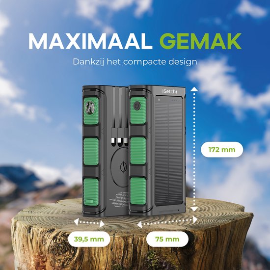 iSetchi Solar Powerbank 42800 mAh - Externer Akku - Notfallpaket - Solarstrom - Schnellladegerät - Mit Kompass und USB-C Kabel - Schnellladung 22.5W - Mit praktischer Taschenlampe - Grün/Schwarz