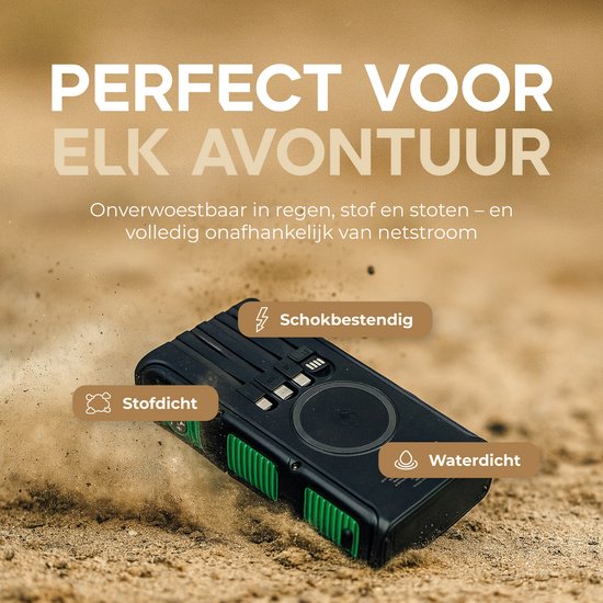Diese Powerbank ist eine praktische Lösung zum Aufladen mehrerer Geräte für unterwegs und im Freien, mit Funktionen, die ideal für Outdoor-Umgebungen sind.