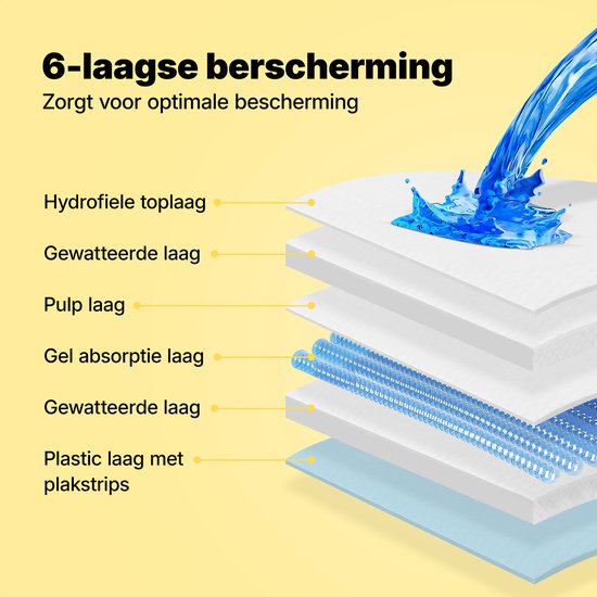 Sind Sie gerade dabei, Ihren Welpen stubenrein zu machen oder hat Ihr Hund Probleme mit Inkontinenz? Die Welpenpads von Jake & Jacky machen die Stubenreinheit Ihres Hundes um einiges einfacher. Diese extragroßen Pinkelpads bestehen aus 6 Schichten, was sie sehr saugfähig und schnell trocknend macht. Sie haben eine PE-Rückseite, die ein Auslaufen verhindert, und vier Klebestreifen an der Unterseite, die die Welpenpads an ihrem Platz halten. Mit einer Größe von 60x60 cm sind diese Welpentrainingsunterlagen für alle Hunderassen geeignet.