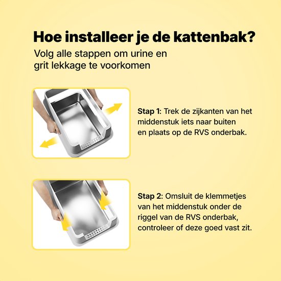 Ein Katzenklo aus Edelstahl hat den Vorteil, dass es robust und langlebig ist. Es gibt keine Abnutzung durch Kratzen oder das Durchsickern von Urin in das Material, wie es bei Alternativen aus Kunststoff oft der Fall ist, und die Katzentoilette bleibt frei von unangenehmen Gerüchen. Die Katzentoilette ist außerdem in zwei Abschnitte unterteilt, die perfekt ineinander passen und das Auslaufen von Urin verhindern.