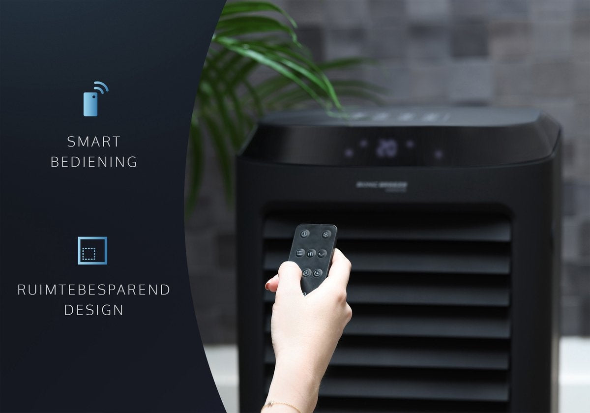 JAP Appliances - 4in1 Klimagerät - mit Wasser - Fernbedienung und Timer - Oszillierender Luftbefeuchter - Schwarz