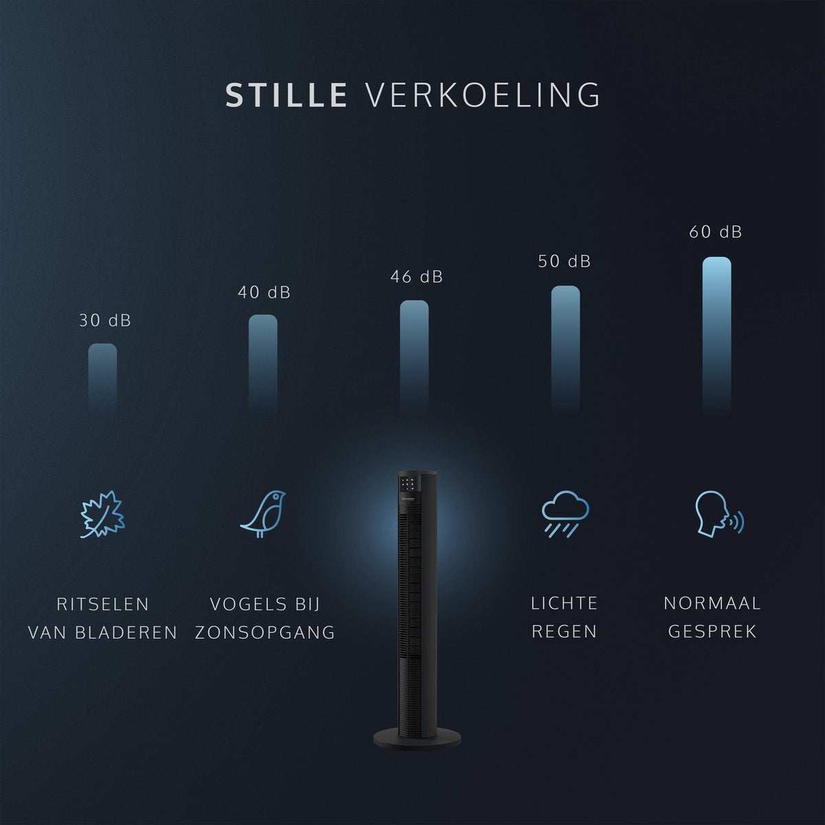 JAP Appliances - Leiser Turmventilator - Fernbedienung und Timer - Oszillierender Säulenventilator - schwarz mattiert