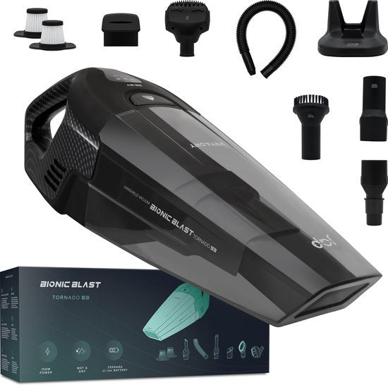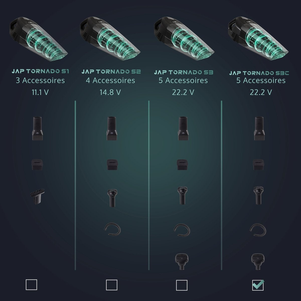 JAP Tornado S3C - Fest und flüssig - Alles in einem Handstaubsauger - Auto, Haustiere und Haus - Kabellos - Beutelloser Staubsauger - 5 Köpfe - 22.2V - Carbon