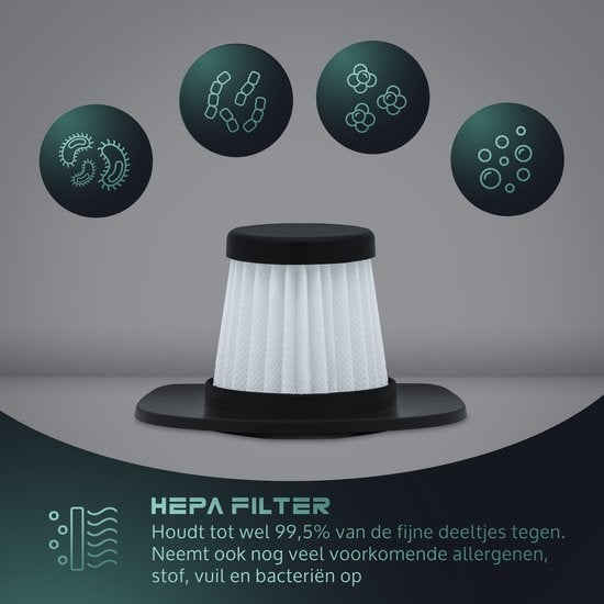Der HEPA-Filter hält bis zu 99,5 % der Feinstaubpartikel zurück. Er nimmt auch gängige Allergene, Staub, Schmutz und Bakterien auf. Dadurch ist der Staubsauger besonders für Menschen mit Stauballergien geeignet.