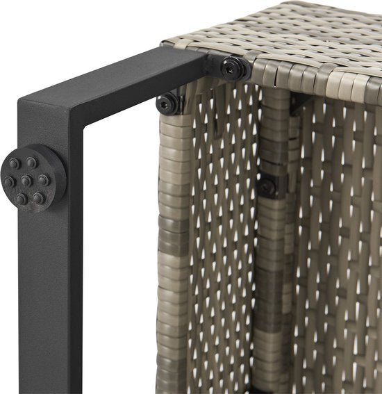 Material der Möbel: pulverbeschichteter Stahl, Polyrotan, gehärtetes Glas
