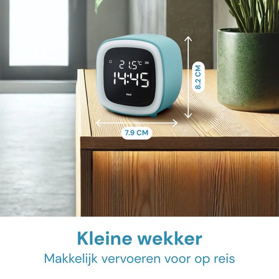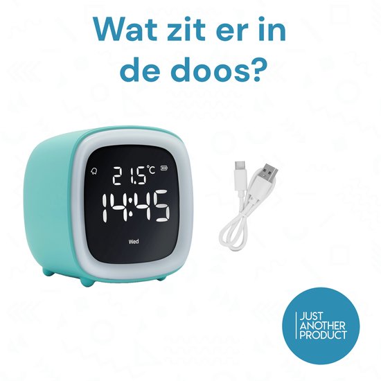 JustAnotherProduct AP18 - Wiederaufladbarer Digitalwecker mit Licht (3 Modi) - Wecker mit Temperatur (15,5°C bis 50°C) - 12/24h Wecker - Nachtlicht - Hellblau