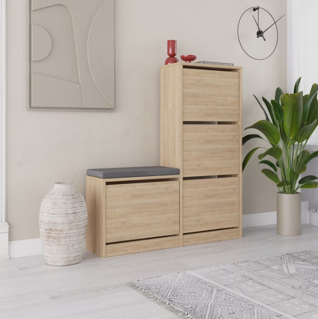 Kalune Dude Schuhschrank Eiche - 105 x 119 x 26 cm - Geräumig und stilvoll