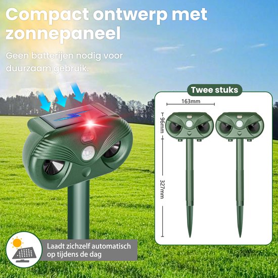 Katzenabwehr - 2 Stück - Ultraschall-Mausabwehr - Solarbetrieben - Gegen Ungeziefer - Grün - von Faas