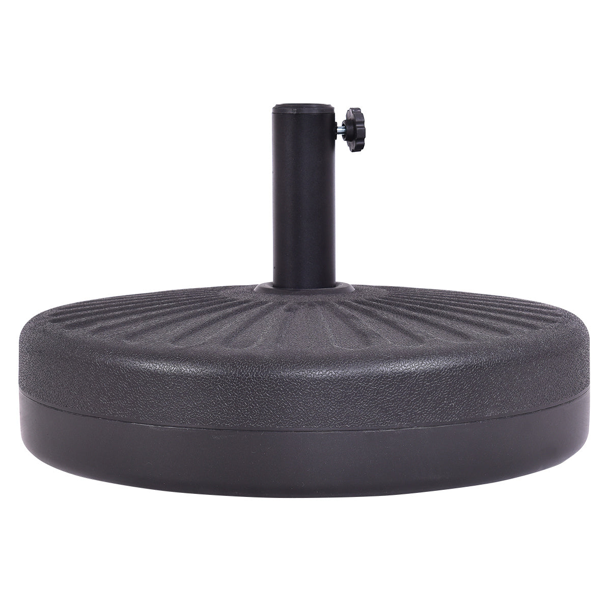 Der Sonnenschirmständer ist aus strapazierfähigem und leichtem Hdpe-Material gefertigt, das Ihren Sonnenschirm stabil hält. Der Schirmständer ist einfach zu bedienen. Sie füllen ihn mit Wasser, dann kann der Schirm sicher und sogar in Ihrem Garten, Terrasse oder anderen Orten gehalten werden. Attribut: Hochwertiges Material - Der Schirmständer ist aus HDPE und Stahl, sowie mit hochwertiger Verarbeitung, robust, langlebig und leicht zu pflegen. Maximale Stabilität - Stabiler Ständer für Sonnenschirm mit rundem und 23L wasserbefüllbarem Boden ist stabil und bietet höchste Sicherheit durch maximale Stabilität. Ehable Design - In elegantem und klassischem Schwarz, lässt sich der Marktschirmständer mit jedem Gartenmöbelstil kombinieren. Ergonomisches Design - zum Befestigen des Sonnenschirms mit einer Sicherungsmutter, mit Griff, einfacher Transport. ANWENDUNG - Geeignet für den ?38mm oder ?48mm Schirm - Ständermerkmale: leicht zu bedienen durch HDPE und Stahlübergang und leicht zu pflegen