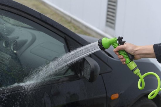 Kinzo Flexibler Gartenschlauch 15 Meter - Inkl. Düse und Schnellkupplung - 7 Sprühfunktionen - Spiralschlauch - UV-beständig - PVC - Grün