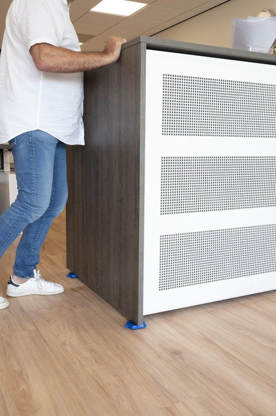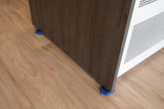 Das 14-teilige Set besteht aus 1 Möbelheber, 4 Möbelrollen, 8 Höhenblöcken und 1 Aufsatz. Mit dem Lifter können Sie das Möbelstück oder einen anderen schweren Gegenstand einfach ein Stück anheben und dann an jeder Ecke eine Rolle sicher anbringen. Stehen Beine darunter? Dann verwenden Sie die Höhenblöcke, um die Möbel mit dem Lifter anzuheben, bis Sie eine Rolle unter jedes Bein schieben können. Unter jeder Möbelrolle befinden sich 12 kleine Räder, die für eine reibungslose Bewegung sorgen. Außerdem befindet sich oben auf den Rollen ein kleiner Drehteller für zusätzliche Flexibilität. Sind die 4 Rollen auf jeder Seite? Dann bewegen Sie die Möbel mit Leichtigkeit, indem Sie sie einfach an ihren Platz rollen.