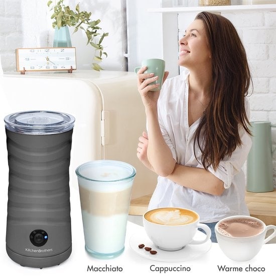 KitchenBrothers Elektrischer Milchaufschäumer - 4-in-1 - 240 ML - Praktischer Milchaufschäumer - Anthrazit