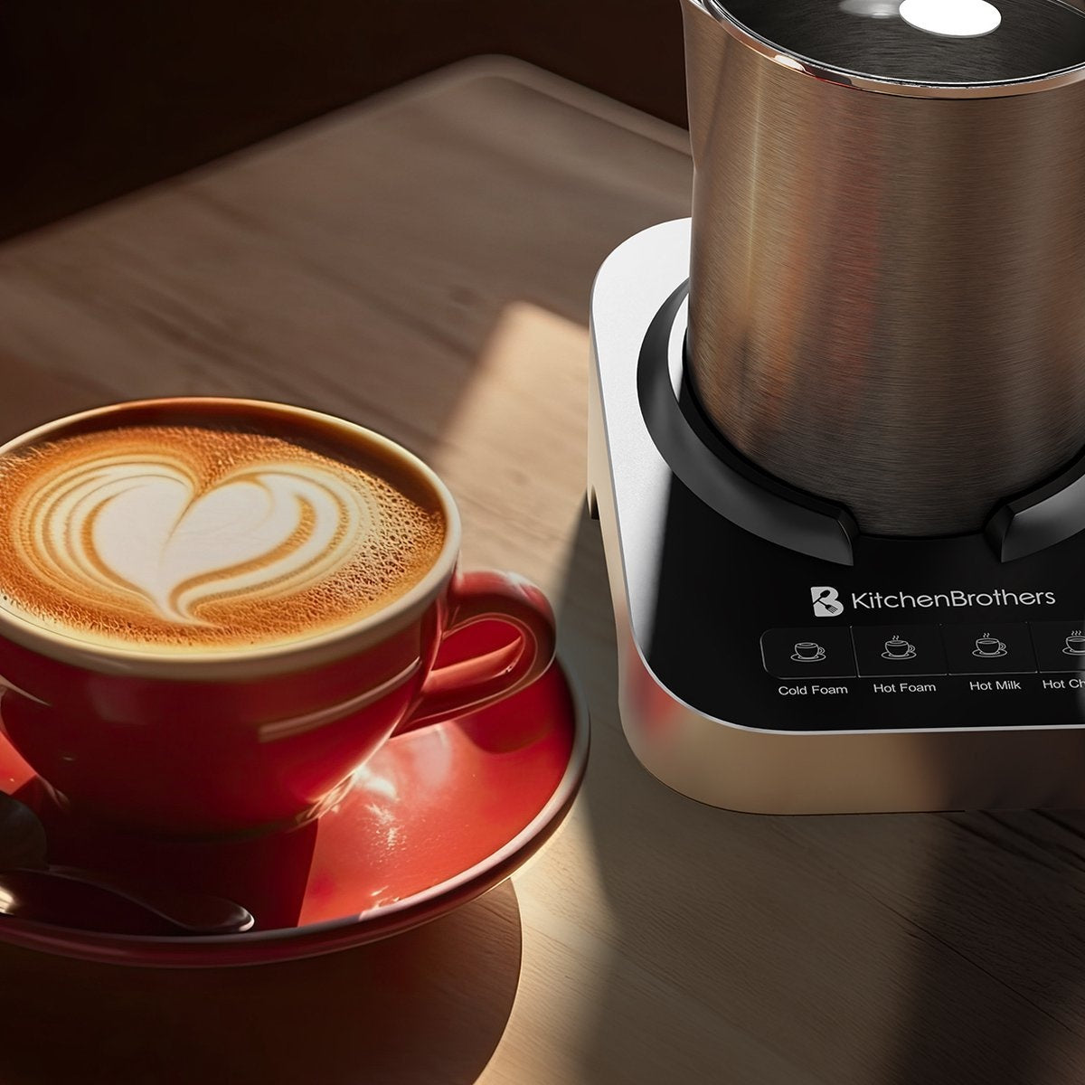 Ein Cappuccino auf dem Balkon am Morgen oder ein leckerer Milchkaffee zum Mittagessen? Ein erfrischender Eiskaffee an einem schwülen Sommertag oder einfach eine heiße Schokolade an einem eisigen Winterabend? Mit dem KitchenBrothers Milchaufschäumer ist das alles möglich.
