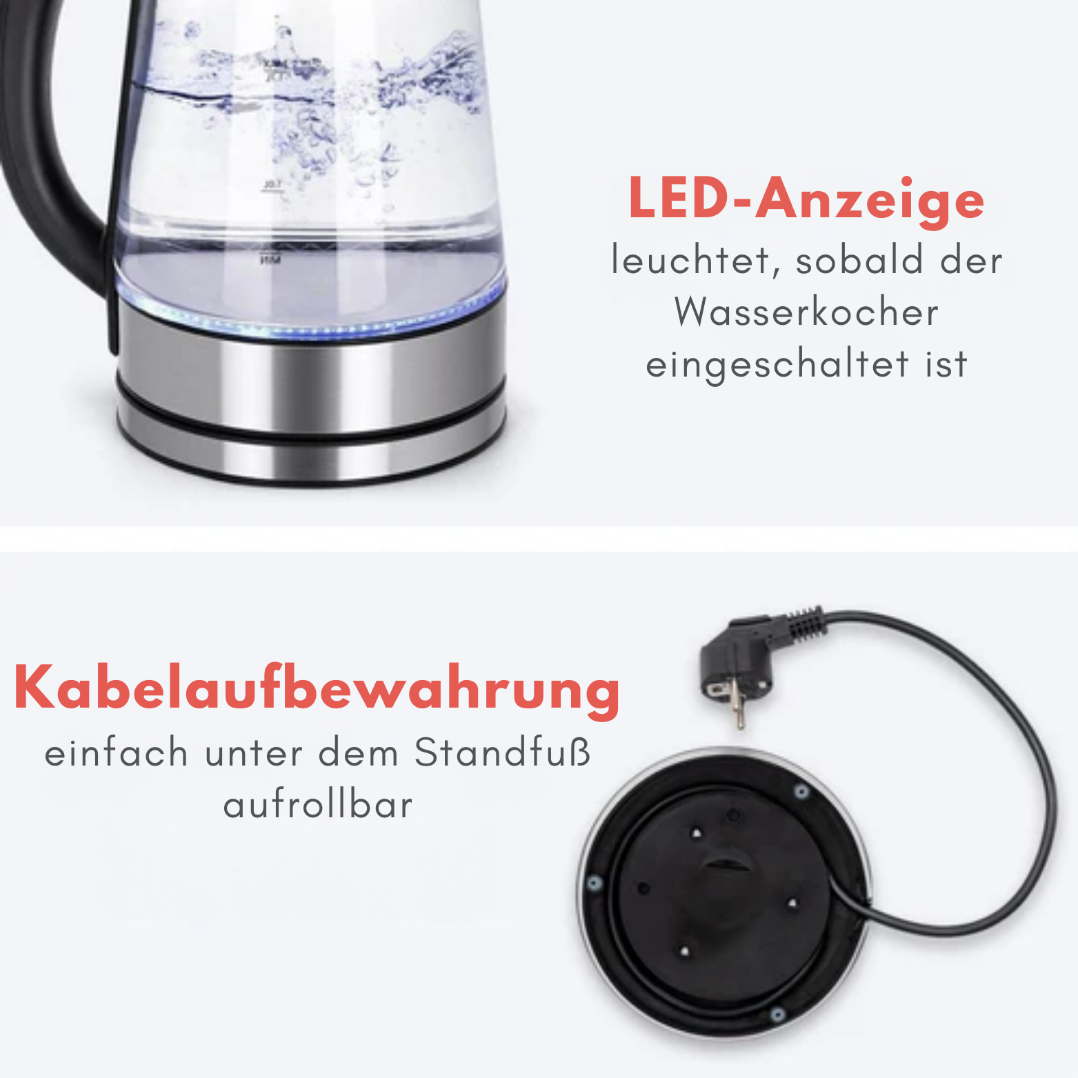 KitchenBrothers Glas-Wasserkocher – 1,7 Liter, 2200 W