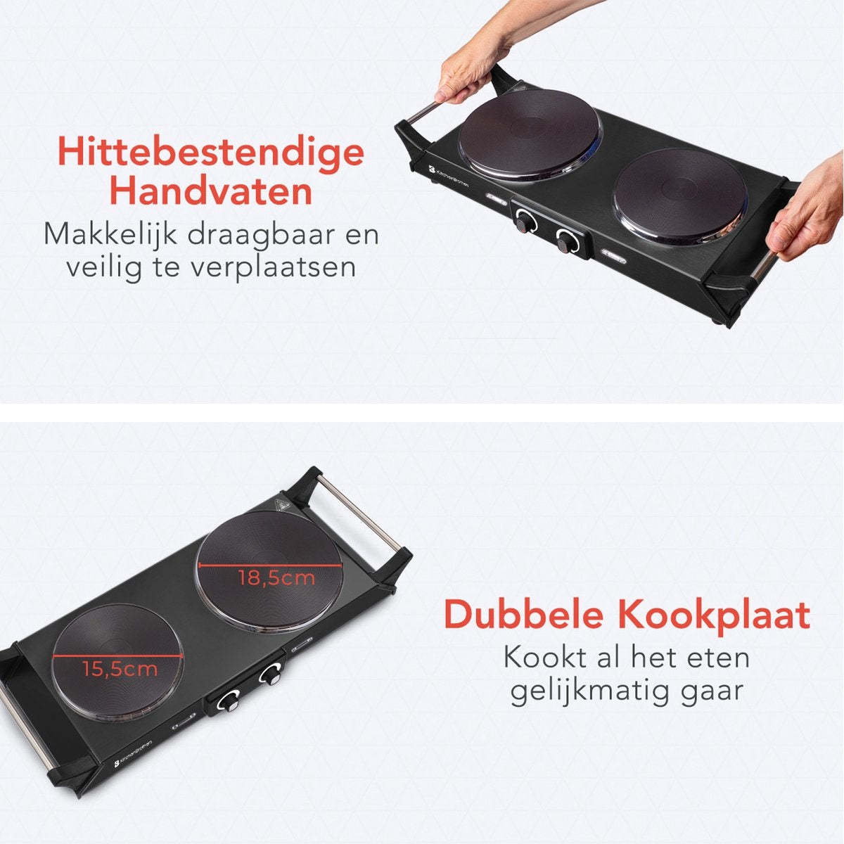 KitchenBrothers Elektrokochfeld - 2 Brenner - 2500W - Schwarz
