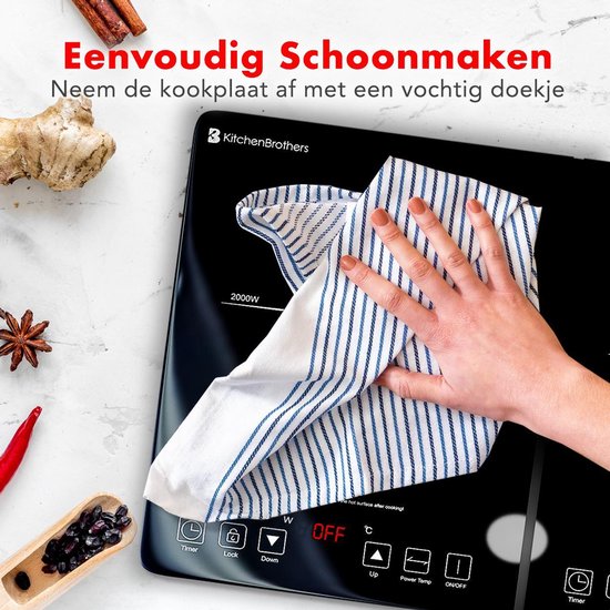 Wenn Sie nur einen Moment nicht aufpassen, ist Ihr Essen verbrannt. Nicht mit dem Induktionskochfeld von KitchenBrothers. Mit dem eingebauten Timer können Sie genau verfolgen, wie lange Ihr Essen schon auf dem Herd steht. Sie können den Timer von 1 Minute bis 3 Stunden einstellen. Wenn der Timer abläuft, schaltet sich das Induktionskochfeld automatisch aus. Das macht das Kochen noch entspannter.