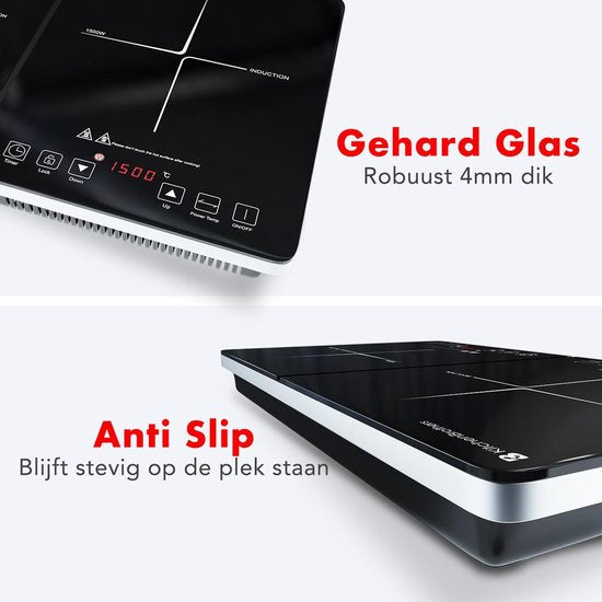 KitchenBrothers Induktionskochfeld - 2 Brenner - Freistehend - 1500W + 2000W - Edelstahl