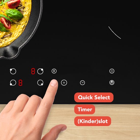 Jede Kochzone kann mit der Turbo-Funktion auf bis zu 2400W hochgefahren werden, so dass Wasser in kürzester Zeit kocht und Mahlzeiten blitzschnell zubereitet werden können. Egal, ob Sie eine schnelle Mahlzeit zubereiten oder mehrere Gerichte auf einmal zubereiten möchten, dieses Induktionskochfeld liefert auch unter hohem Druck eine hervorragende Leistung.