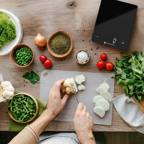 KitchenBrothers Küchenwaage - Küchenwaage - Digital - 1g bis 10kg - Batterien enthalten - Glas/Schwarz