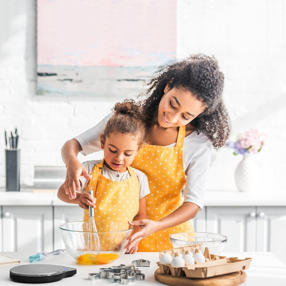 Die Küchenwaage verfügt über eine Tara-Funktion. Damit kannst du das Gewicht des Behälters, den du verwendest, ignorieren. Setze einfach den Behälter auf die Waage und setze das Gewicht auf 0 Gramm zurück – für noch präziseres Wiegen!