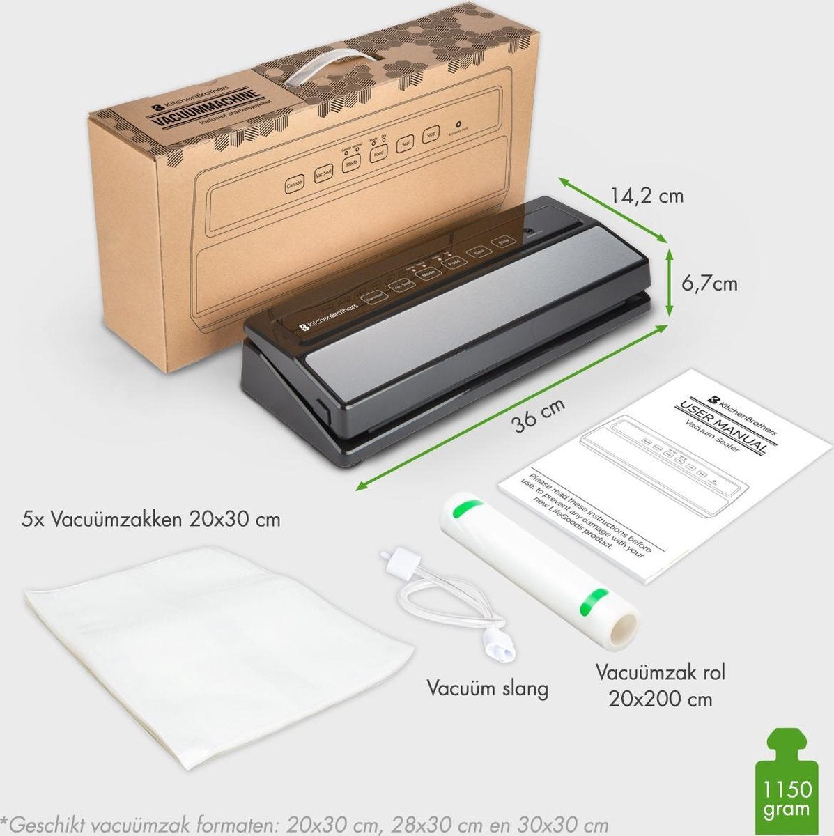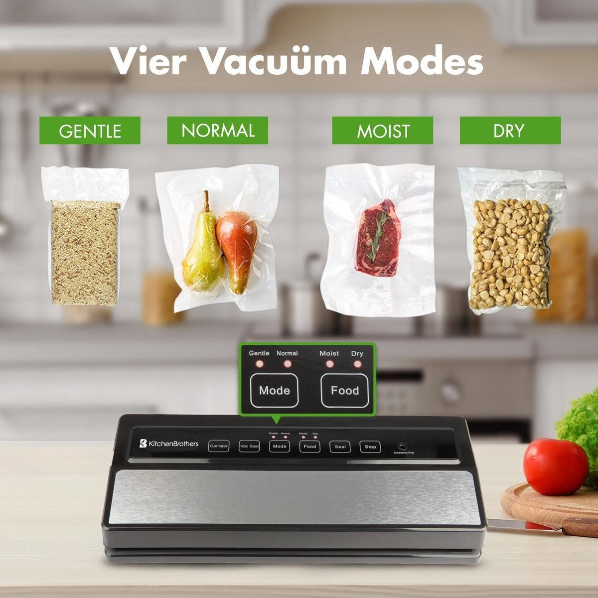 KitchenBrothers Vakuumierer - 4 Einstellungen - Inkl. Folienrolle, Vakuumbeutel und Vakuumschlauch