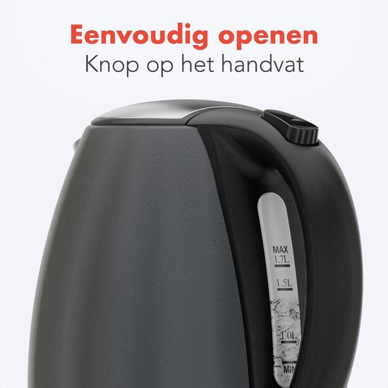 KitchenBrothers Wasserkocher - Elektrisch - 1.7L - Mit Kalkfilter - Titanium Grau/RVS