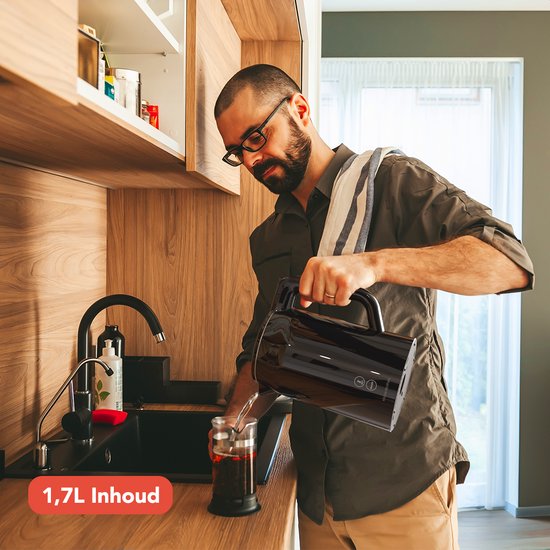 KitchenBrothers - Wasserkocher - Mit Temperaturregelung - Elektrisch - Kalkfilter - Warmhaltefunktion - Display - 1,7L - 2200W - Schwarz