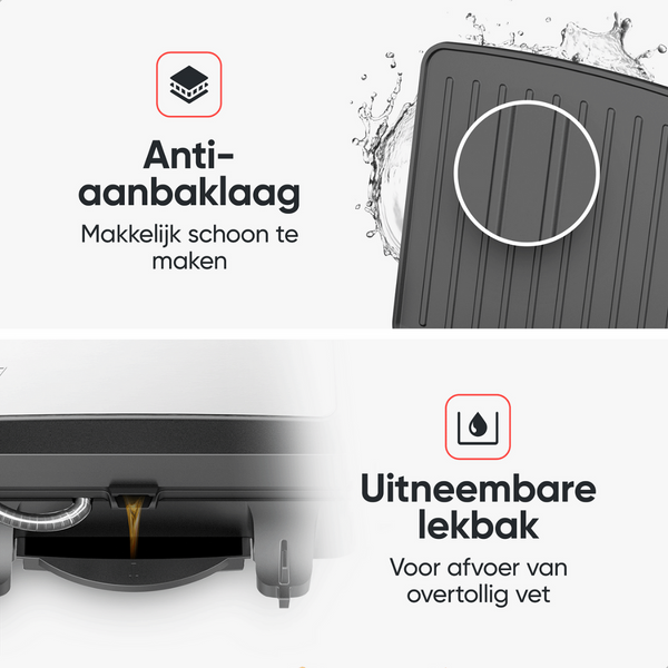 Benutzerfreundlich: Bei der Entwicklung dieses Kontaktgrills stand der Komfort im Vordergrund. Der robuste Griff sorgt dafür, dass Sie den Grill sicher öffnen und schließen können, auch wenn er die höchste Temperatur erreicht hat. Dank der Antihaftbeschichtung ist die Reinigung ein Kinderspiel.